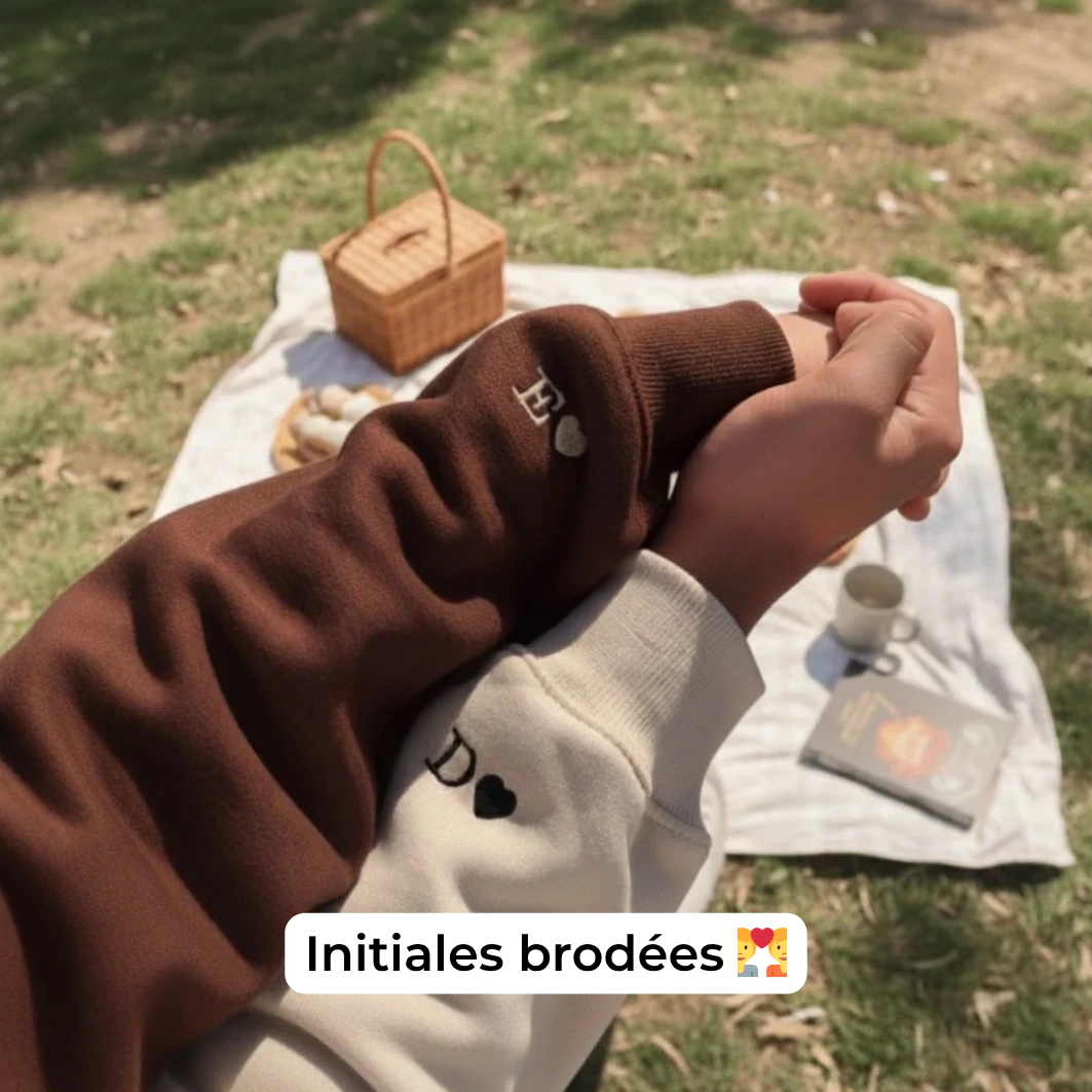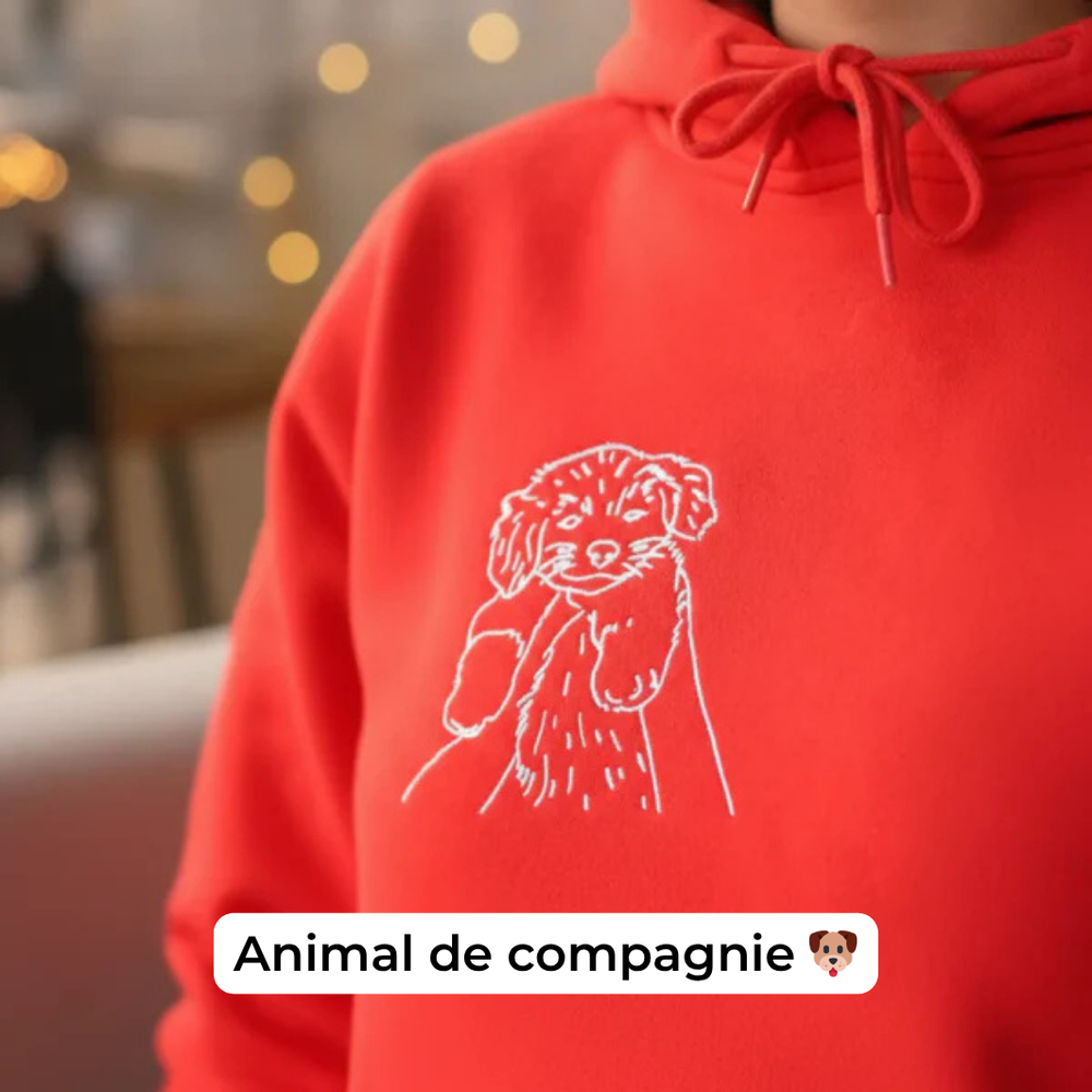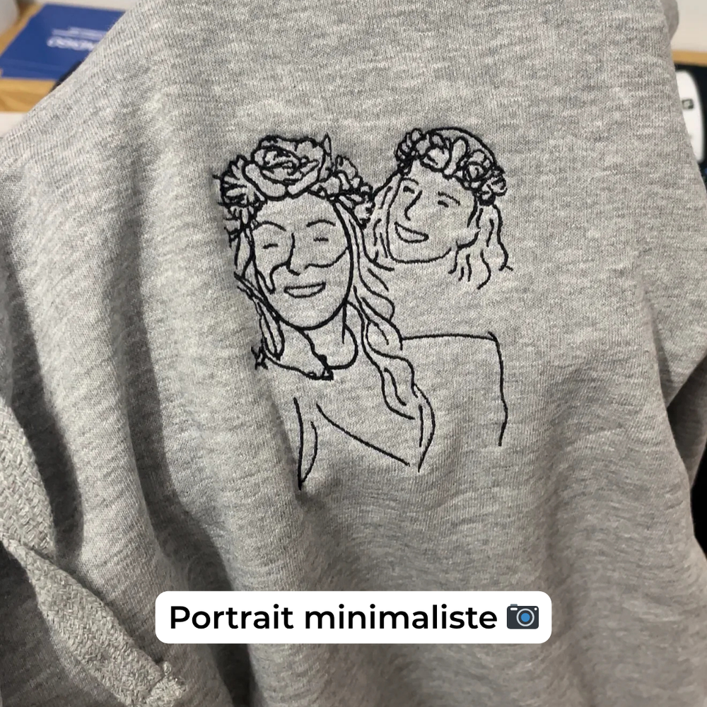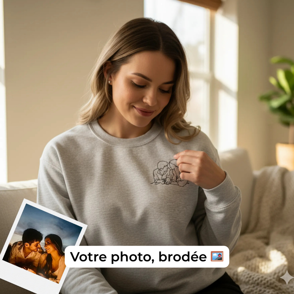 « Offrez-lui un sweat personnalisé brodé avec votre photo : le dessin de votre couple, un souvenir pour la vie. »